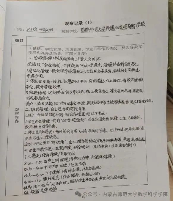 我是beat365中文官方网站的2022级数学与应用数学专业5班的薛文静,于 2025年2月16日至2025年6月30日在北京市首都师范大学附属回龙观育新学校进行教育实习。在这段充实且意义非凡的日子里,我收获了许多宝贵的经验与成长,也深刻体会到了教师这一职业的光荣与责任。以下是我在实习期间的详细总结:
