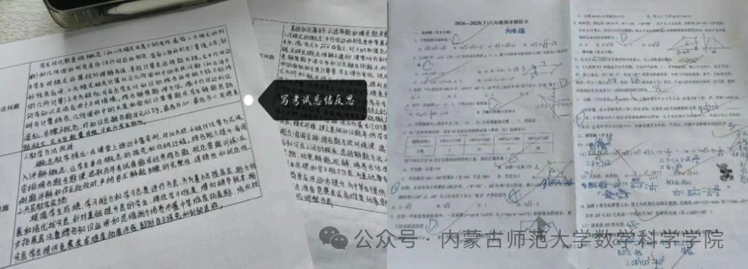 在批改数学作业、考试卷及小考卷的过程中,我收获颇丰。通过逐份审阅学生的解题思路,我不仅更深入理解了教材重难点在实际应用中的易错点,也从学生多样化的答题方式中拓展了教学视角。每一份作业的批改,都是对教学细节的复盘:从基础计算的失误到几何证明的逻辑漏洞,从应用题审题偏差到创新性解题思路的闪现,都让我意识到教学中需强化的环节。同时,通过对比四班和五班学生的作答差异,我学会了更精准地分析学情,总结不同班级的学习特点,为后续分层教学与个性化指导积累了宝贵经验。这些实践经历不仅提升了我的教学敏锐度,更让我在发现问题、反思改进的过程中,实现了从理论到实践的跨越性成长。