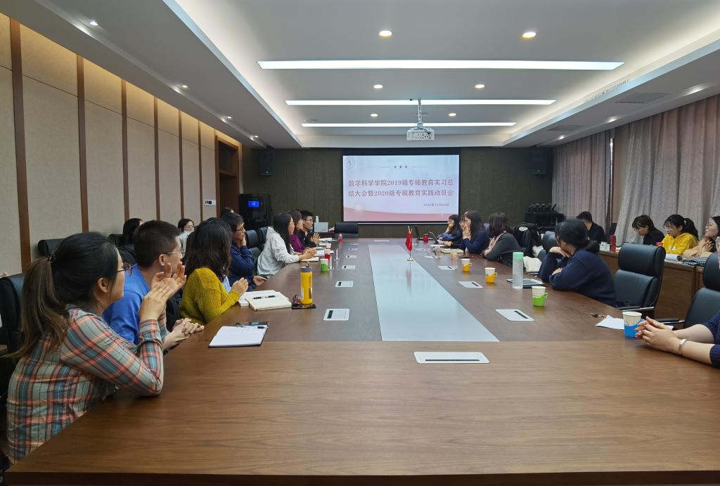 会议进行到尾声,包霞副院长对本次的教育实践活动进行了总结,对莅临本次会议的三位老师表达了谢意,对实习生们充实的教育实习给予肯定与赞扬,言道:“自己作为老师和家长被实习生的总结报告所感动。”她鼓励在座的研究生们继续努力,早日成为优秀的数学教师。
