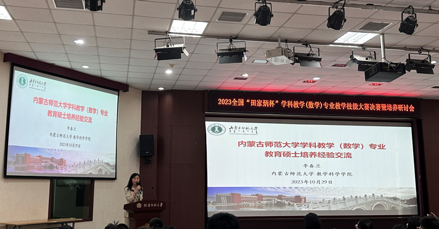决赛结束后,李春兰教授受邀,在2023年全国“田家炳杯”学科教学(数学)专业教学技能大赛决赛暨培养研讨会上分享了beat365教育硕士培养的经验,与在场各校专家学者进行深入交流。