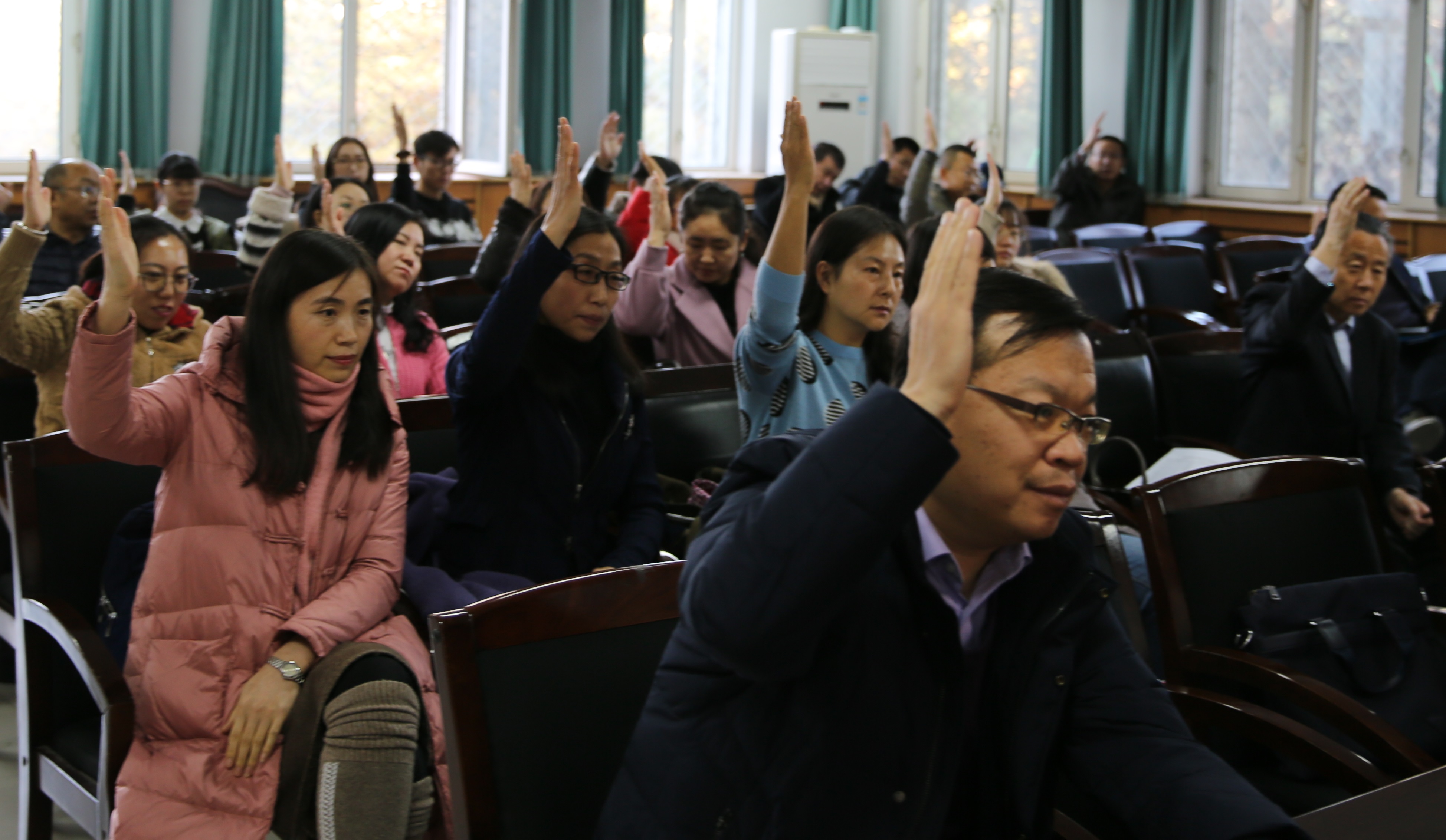 在校党委的领导下,2018年11月22日下午3:00,beat365中文官方网站党总支换届选举党员大会在文史楼1号会议室隆重召开。按照党委组织部的批复,本次党总支换届选举党员大会如期召开。大会由beat365中文官方网站党总支副书记副院长季建光同志主持。党总支书记扎其劳同志代表上届学院党总支委员会作工作报告。大会审议和表决通过学院党总支工作报告、选举办法、监票人和计票人。通过党员大会选举产生新一届学院党总支委员会委员扎其劳、季建光、刘官厅、包霞、李联和、毕力格图、皮建东等七位同志