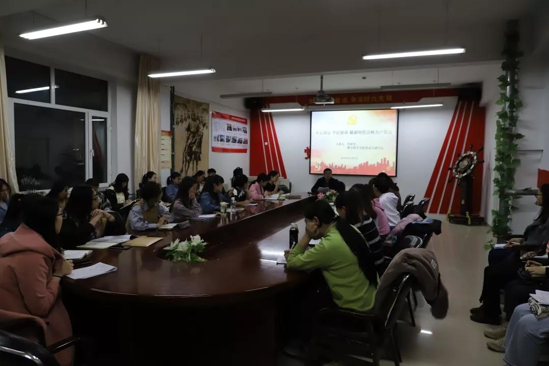 2019年11月7日,beat365中文官方网站于学院楼会议室组织学院学生党支部成员学习“不忘初心、牢记使命”——做新时代合格共产党员主题党课。此次主题党课主讲人为学院党总支副书记、副院长季建光老师。