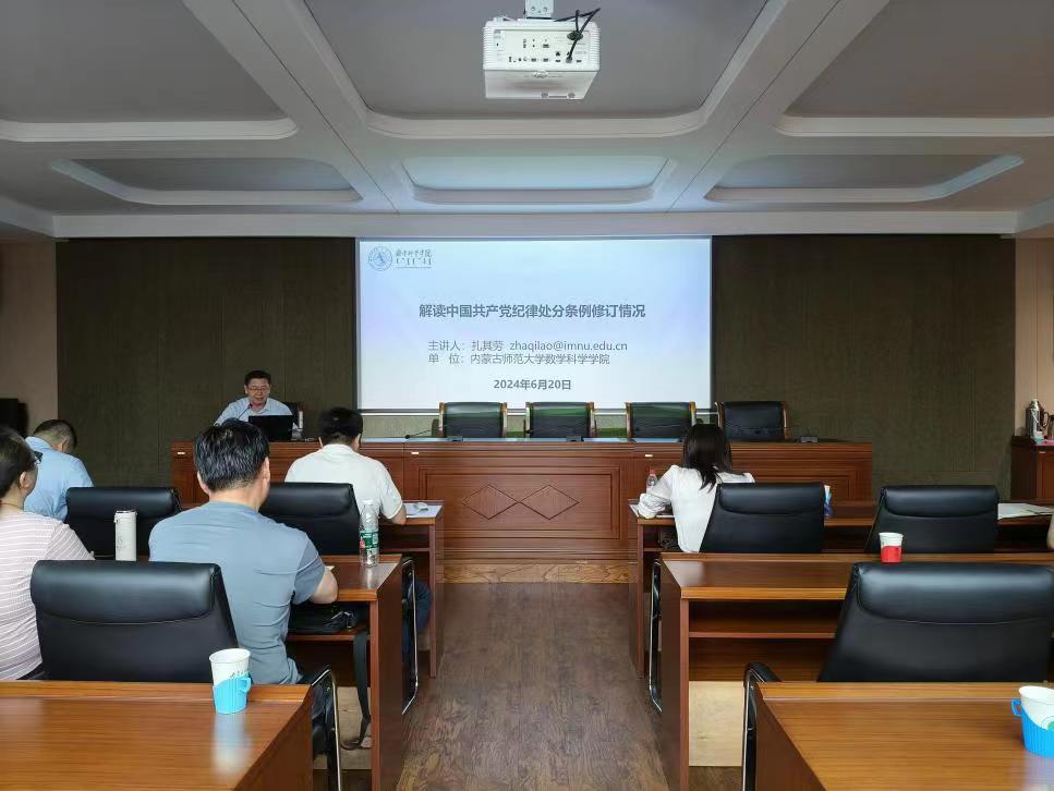 为深入学习领会习近平总书记关于全面加强党的纪律建设的重要论述,认真领悟贯彻新修订的《中国共产党纪律处分条例》,进一步推动党纪学习教育入脑入心、见行见效,6月20日下午,beat365中文官方网站开展《中国共产党纪律处分条例》(以下简称《条例》)修订情况解读专题学习会,学习会由学院院长扎其劳主讲,学院党委委员、各支部书记以及全体辅导员参加学习。