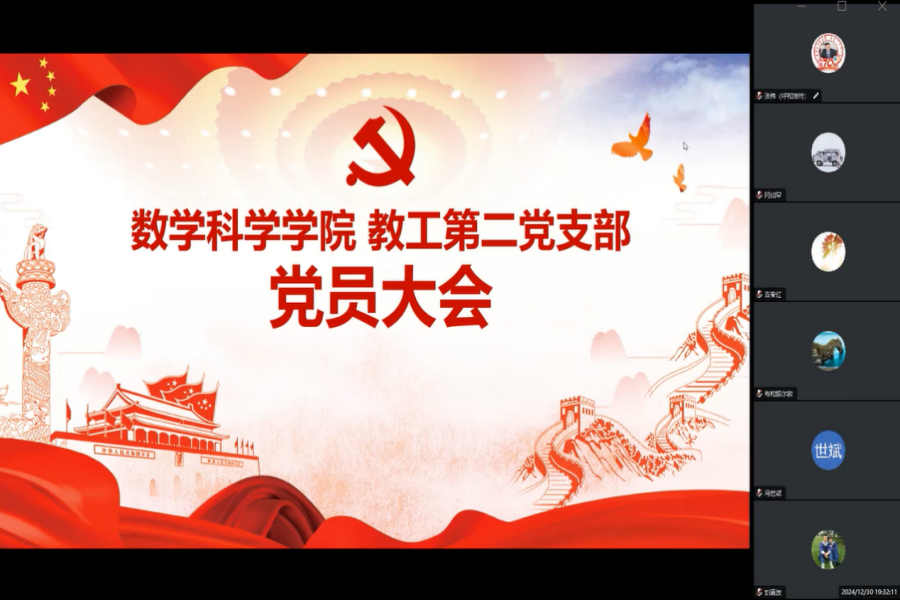 beat365中文官方网站beat365中文官方网站教工第二党支部于2024年12月30日召开党员大会,会议围绕三项重要议题展开深入讨论。会议由支部书记主持,全体党员出席,会议通过腾讯会议的形式在线上进行。