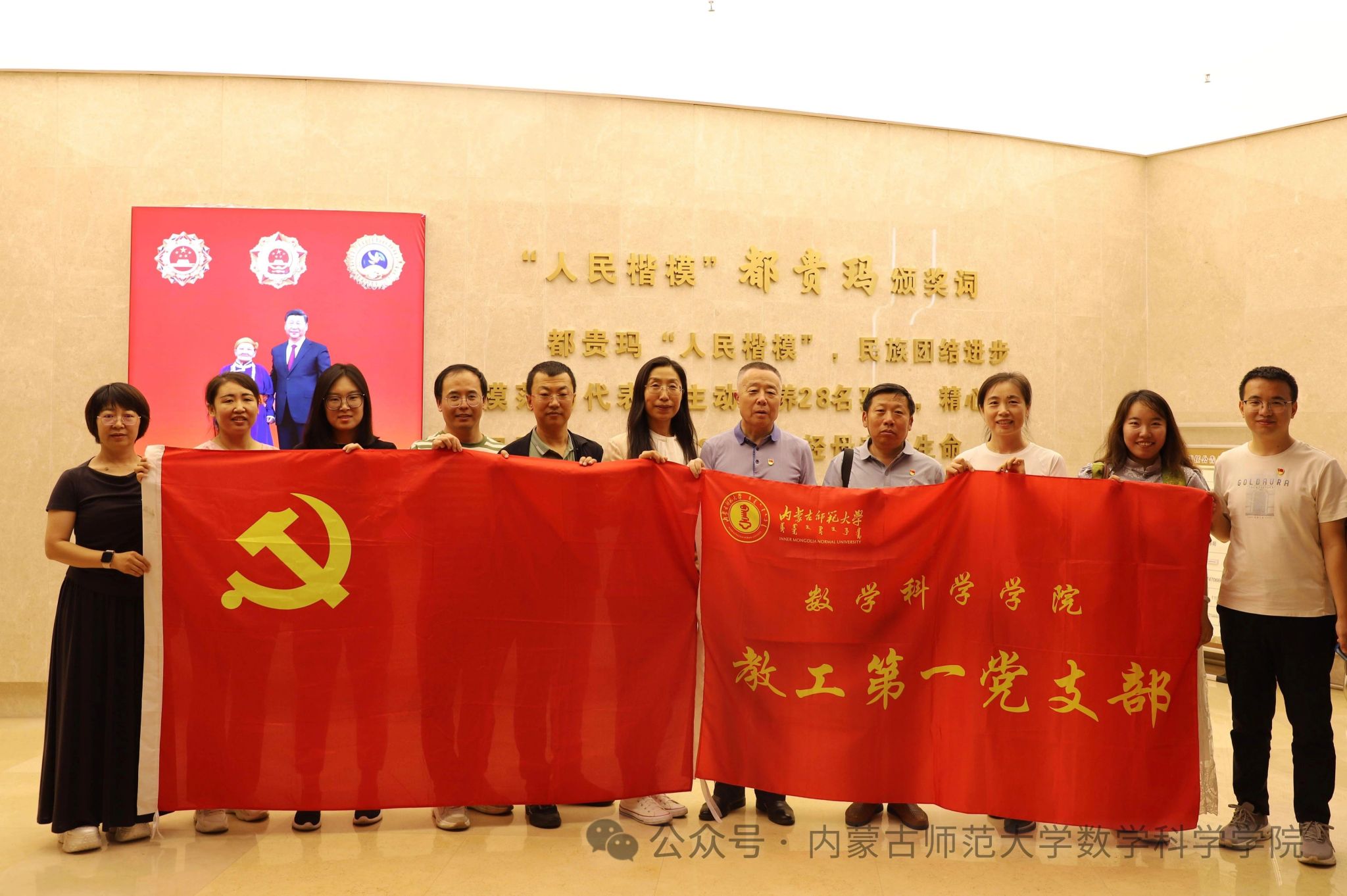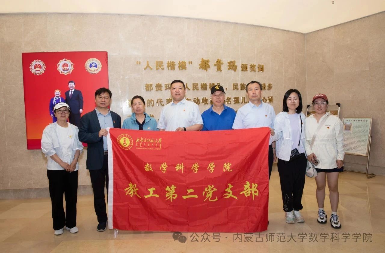 为了庆祝中国共产党诞辰104周年,扎实开展深入贯彻中央八项规定精神学习教育,传承红色基因,强化党员使命担当,铸牢中华民族共同体意识,6月22日,beat365中文官方网站教工党支部赴乌兰察布市四子王旗开展了“慰问人民楷模都贵玛 上一堂行走的思政大课”迎“七一”主题党日活动。活动期间,教工党支部党员看望了“人民楷模”“草原母亲”都贵玛额吉,集体参观了四子王旗博物馆、四子王旗党史教育实训基地“神州家园”科技馆,与四子王旗实验小学联合开展了党建联建暨教育帮扶活动。
