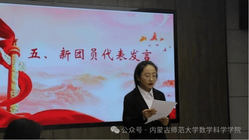 新团员入团仪式在庄严而热烈的氛围中举行。全体团员齐唱中国共产主义青年团团歌,新团员面向鲜艳的团旗庄严宣誓,老团员一同重温入团誓词。仪式上,新老团员代表分别发言,结合自身学习与成长经历,畅谈对共青团组织的认识和感悟,表达了坚定不移听党话、跟党走,积极投身时代洪流、勇担民族复兴重任的坚定决心。学院团总支阿茹罕老师勉励新团员以入团为新的起点,珍惜时光,勤奋学习,不断提升综合素质和实践能力,在科技创新、社会服务、学术钻研等各领域发挥先锋模范作用。