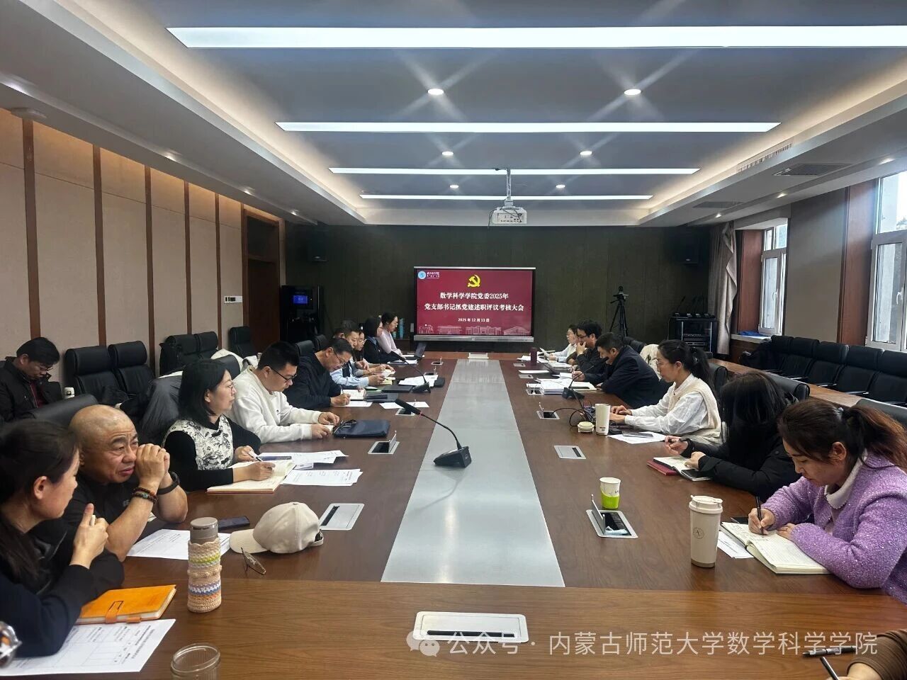 学院党委书记张伟在听取各党支部书记述职汇报后,逐一作出点评。他对各支部过去一年在强化理论武装、夯实组织基础、加强党员教育管理等方面取得的成效表示肯定,同时也明确指出了当前支部工作中存在的共性及个性问题。张伟强调,要持续深化beat365中文官方网站党建品牌矩阵建设,以“数映内蒙古”为核心抓手,依托“13579”工作体系,紧密围绕数学学科特色,促进党建工作与学科建设、人才培养的深度融合。就下一阶段工作,他提出以下几点要求: