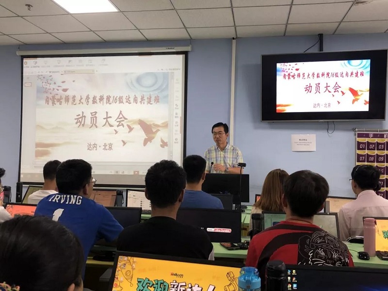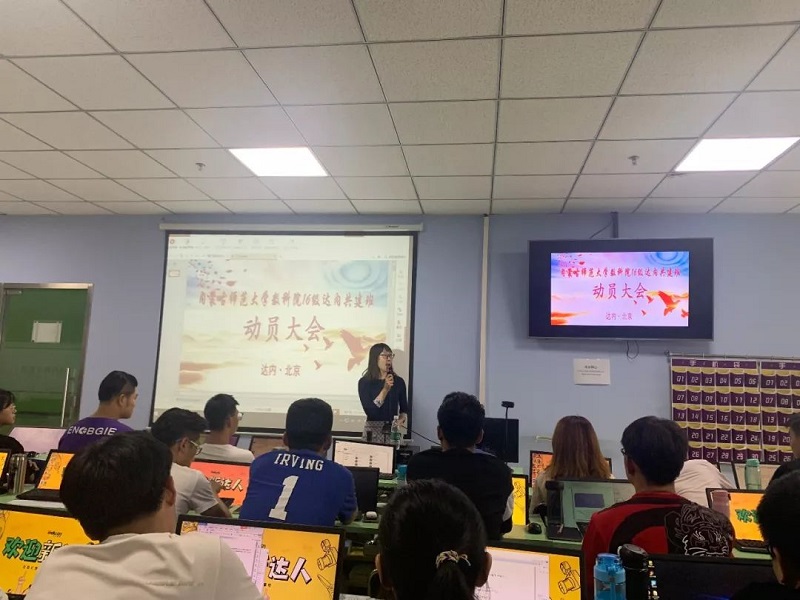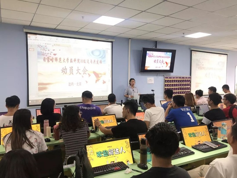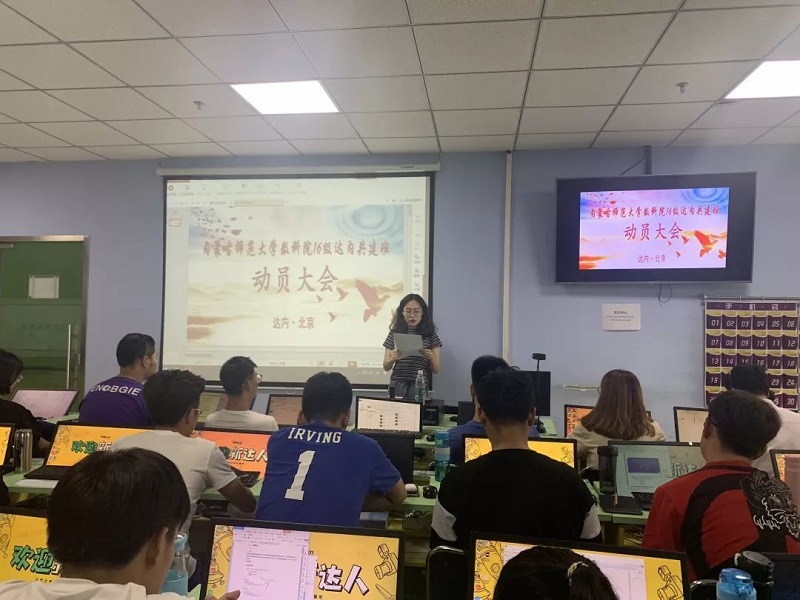 2019年9月4日下午,beat365中文官方网站院长刘官厅教授、副院长包霞副教授、王桂霞教授因心系16级信息与计算科学大数据班学生,不辞辛劳到北京看望在北京学习的同学们,并在达内领导及驻校班主任王建新老师的陪同下出席beat365中文官方网站数科院16级信息与计算科学大数据班动员大会。