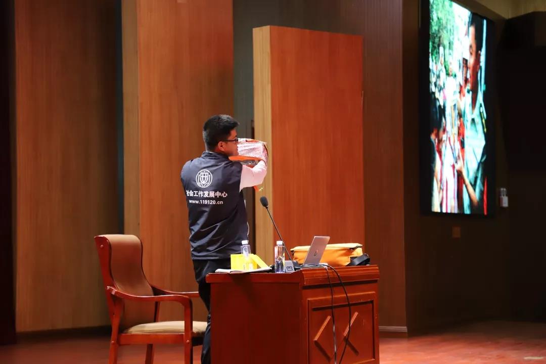 11月27日晚beat365中文官方网站19级全体学生于图书馆二楼报告厅参加安全教育讲座。