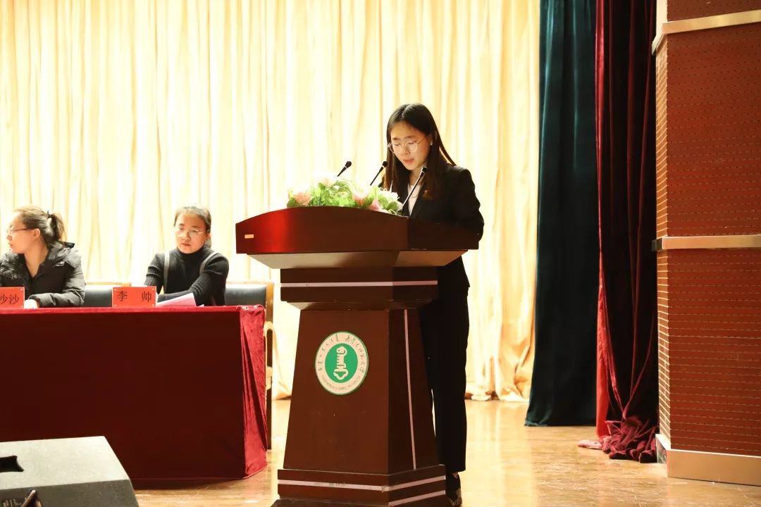 优秀学子代表17级信息一班贾梦姝同学发言。