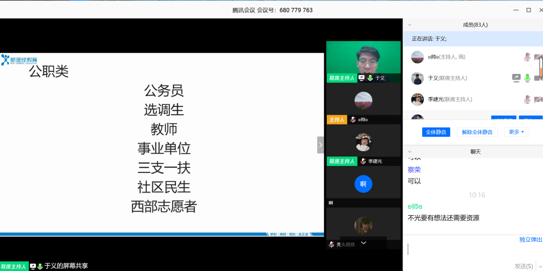 为帮助beat3652020届毕业生解决在择业、就业过程中遇到的问题和困惑,beat365中文官方网站特别邀请到新途径职业教育部部长于义老师、新途径教师招考研究院院长包娜娜老师于2020年4月19日为毕业生们进行线上就业指导讲座。学院党委副书记、副院长季建光老师,学就办负责人李帅老师、辅导员张惠清老师及2020届毕业生参加此次会议,会议由李帅老师主持。