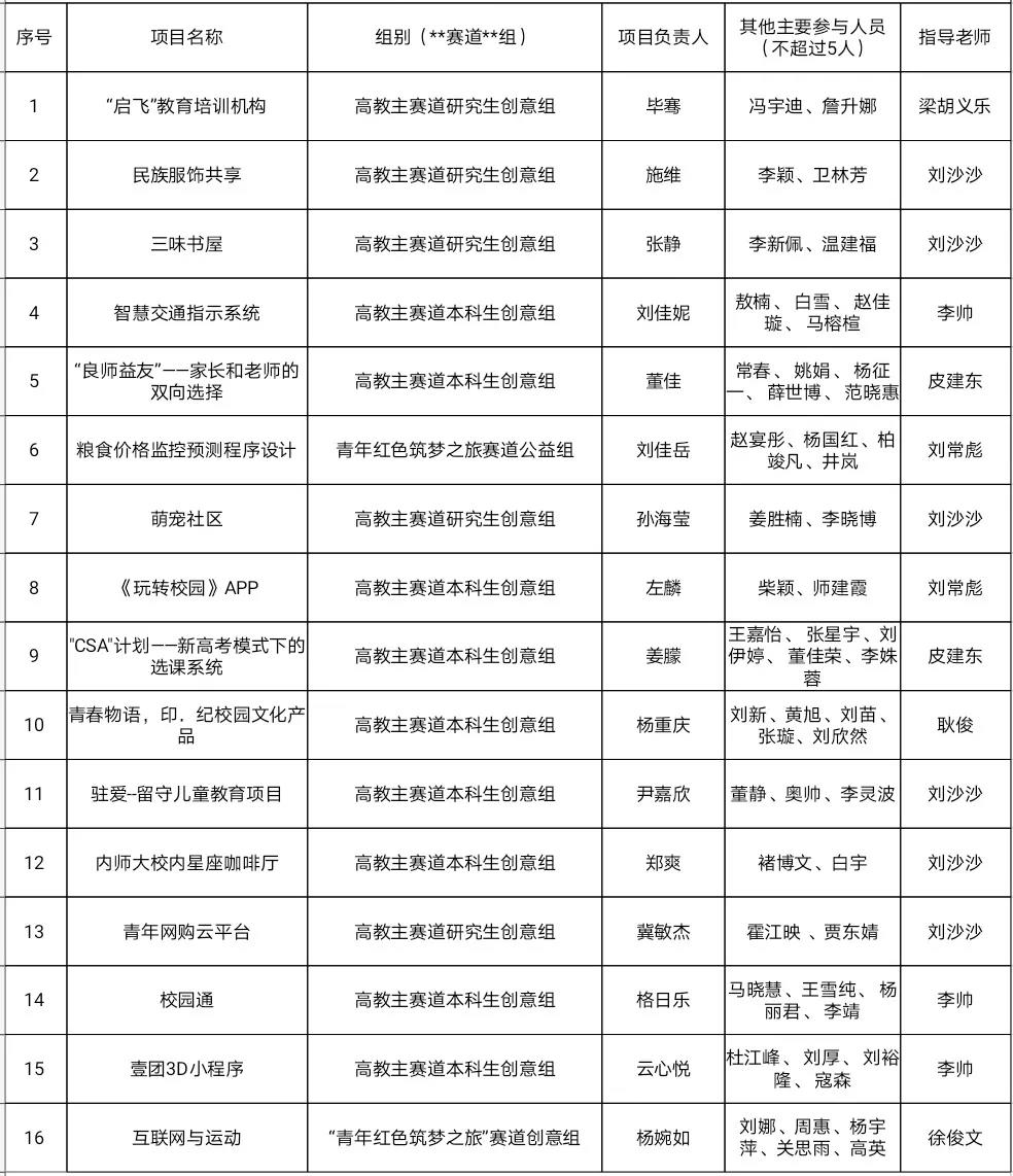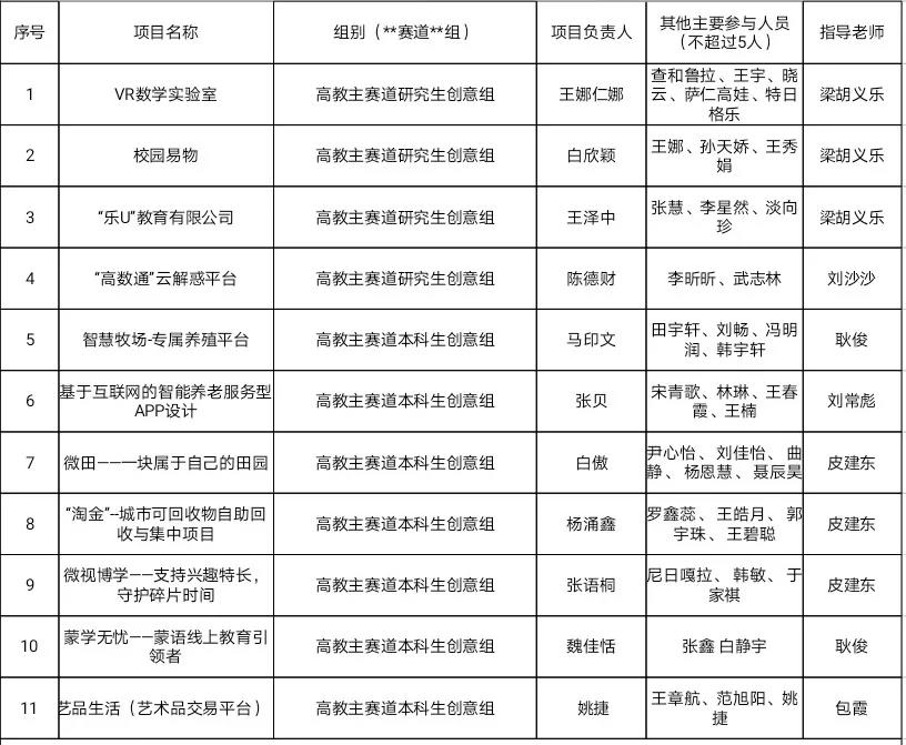 第七届中国国际"互联网+"大学生创新创业大赛beat365中文官方网站院赛初审名单: