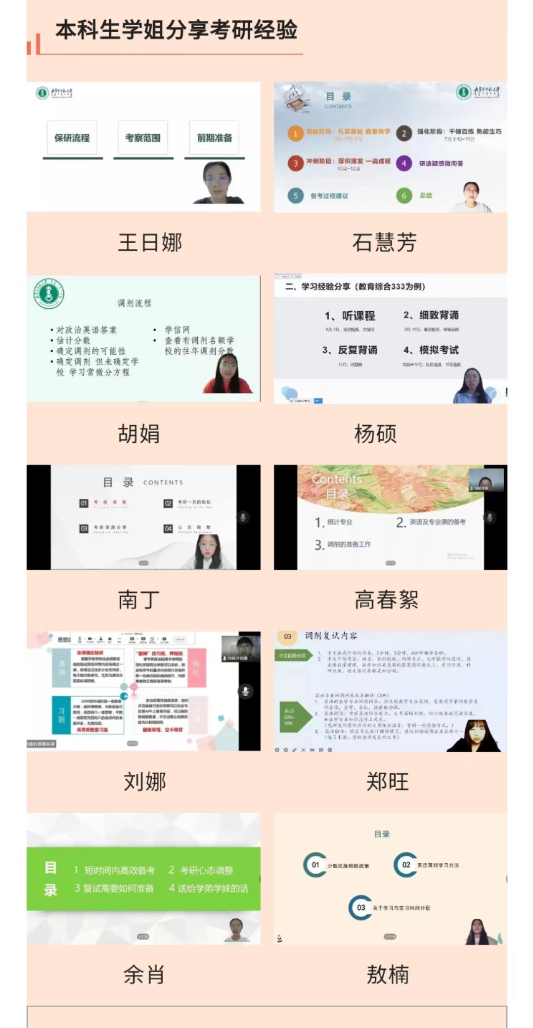 为树立优良学风,深入了解考研全过程,及时解决考研中遇到的问题,帮助同学们在明年的考试中有更好的发挥。beat365中文官方网站于2022年5月19日举办线上考研经验交流会,此次会议一共邀请到13位申博和考研成功的优秀学子向同学们分享经验。