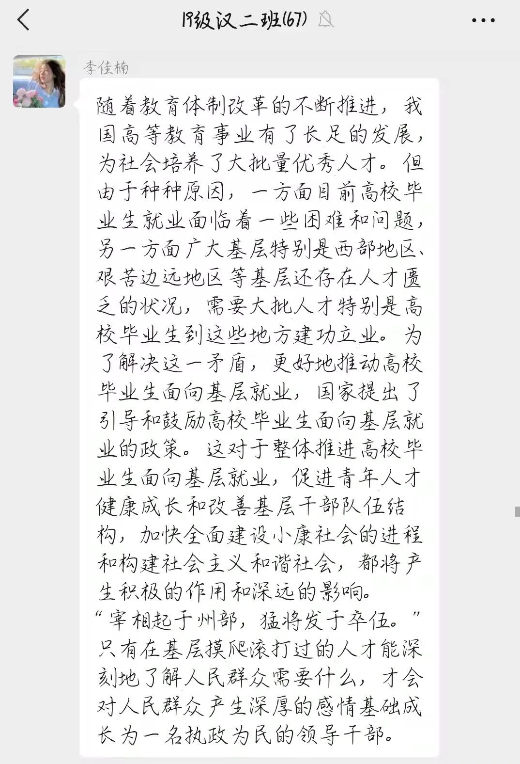 高校毕业生基层就业是其施展才华、成长成才的重要渠道,也是全面推进乡村振兴的重要助力,希望同学们积极投身于基层就业创业,为家乡美丽建设贡献力量!