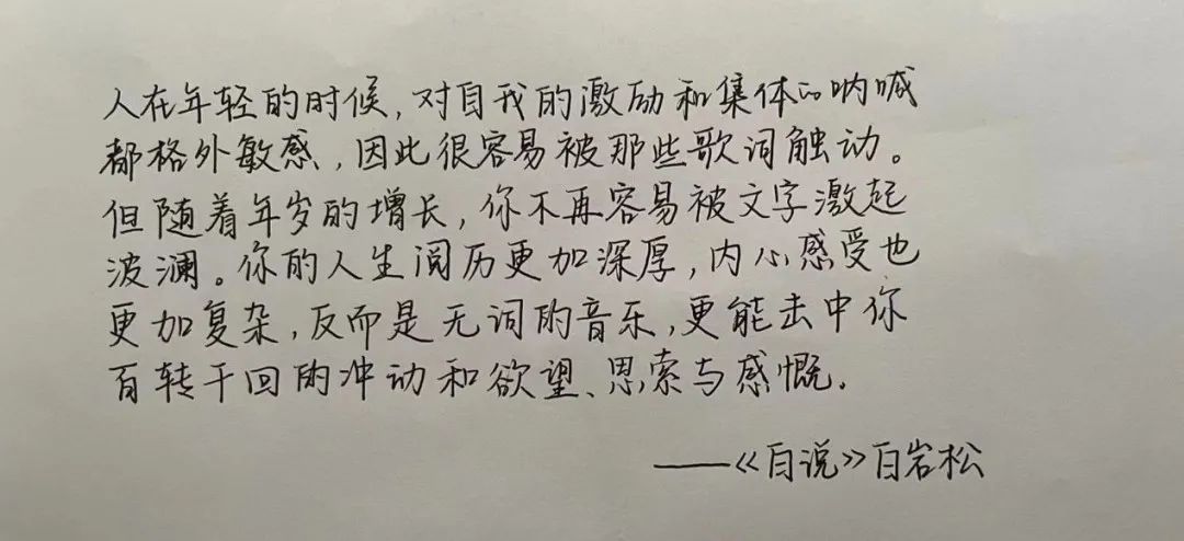 《白说》中秉承了白岩松主持节目的风格,充满了睿智,以其凌厉且平实的笔锋直面现实,亲切自然。比如说其在汶川地震灾区时的直播,朗诵了一首诗《生死不离》,并用《德意志安魂曲》配乐,白岩松在书中称之为“莫名其妙觉得它对”,归纳出没有信仰的时候,音乐也是信仰。