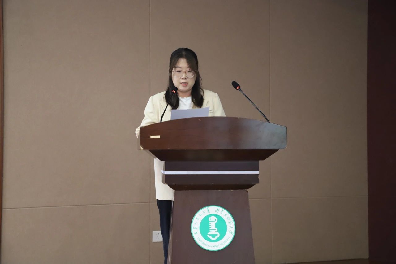 在校生代表刘倩同学首先对学弟学妹们的到来表示热烈的欢迎,接着,她以自己的考研经历为例,鼓励学弟学妹们在求学道路上一定要不惧困难,迎难而上,压力和挫折只是暂时的,总有一日,守得云开见月明。