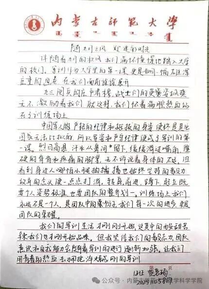 军训仍在火热进行中,beat365中文官方网站学子的笔尖已悄然记录下这段旅程的点滴感悟。那些关于坚持的独白、关于团结的思考、关于蜕变的期许,正从字里行间缓缓流露,成为当下军训时光最鲜活的注脚。