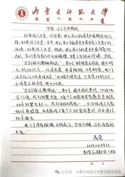 纸短情长,感悟仍在延续。愿同学们继续带着这份对军训的真切体会,在余下的训练里收获更多成长,让这些手写的心得,成为日后回望迷彩青春时,最温暖、最有力的回忆。
