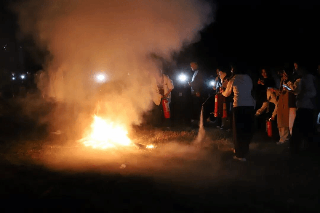 演练第二阶段,全体参演师生在应急避难场所集合。保卫处白国庆老师现场讲解了灭火器的类型、使用方法和注意事项,并组织部分师生代表进行实操演练,进一步加深了师生对消防器材使用要领的理解与掌握。