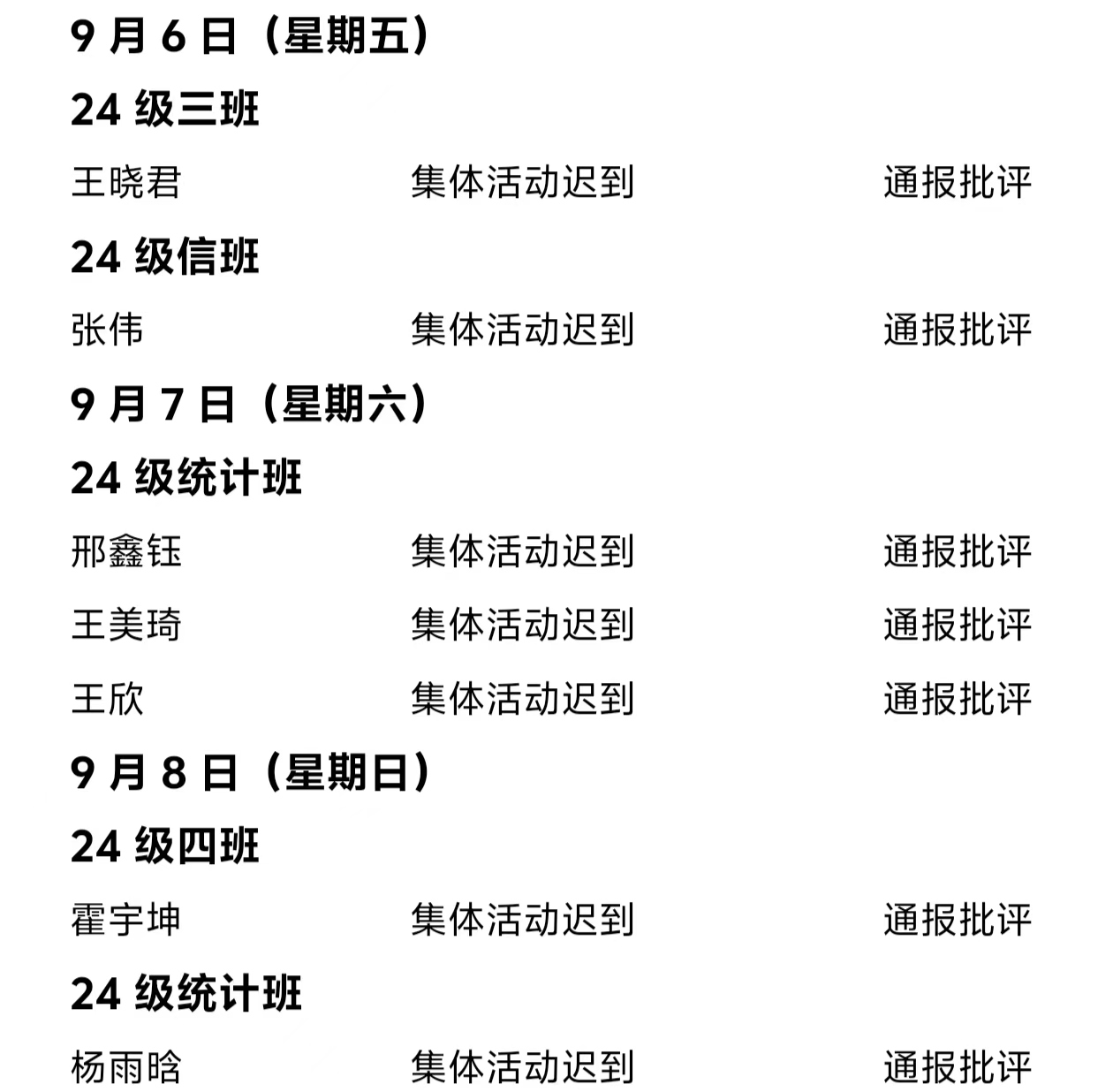 beat365中文官方网站2024——2025年度第一学期第二周通报情况
