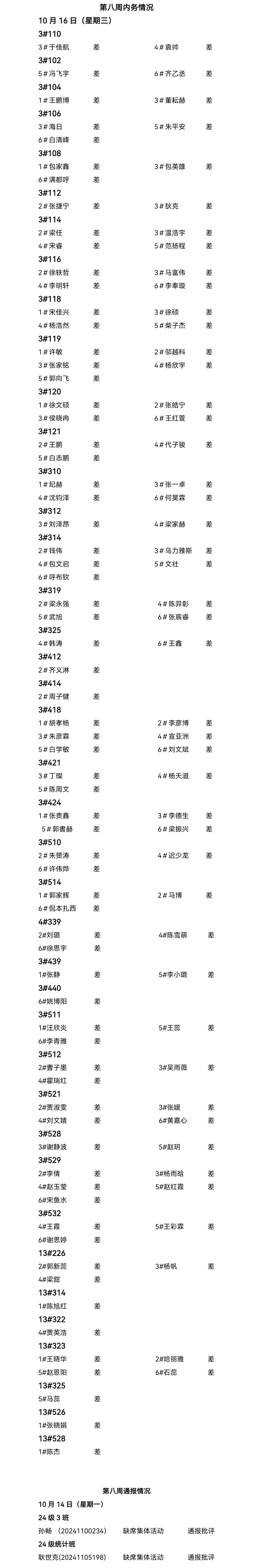 beat365中文官方网站2024——2025年度第一学期第八周通报情况