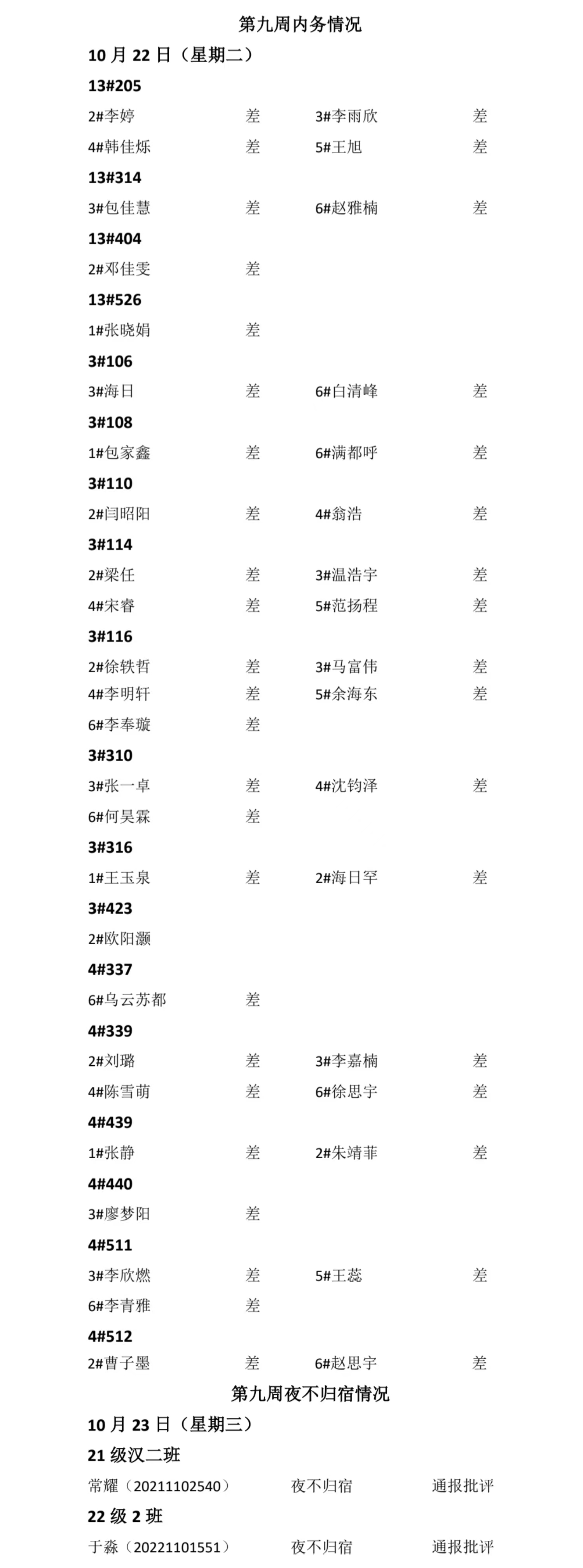 beat365中文官方网站2024——2025年度第一学期第九周通报情况