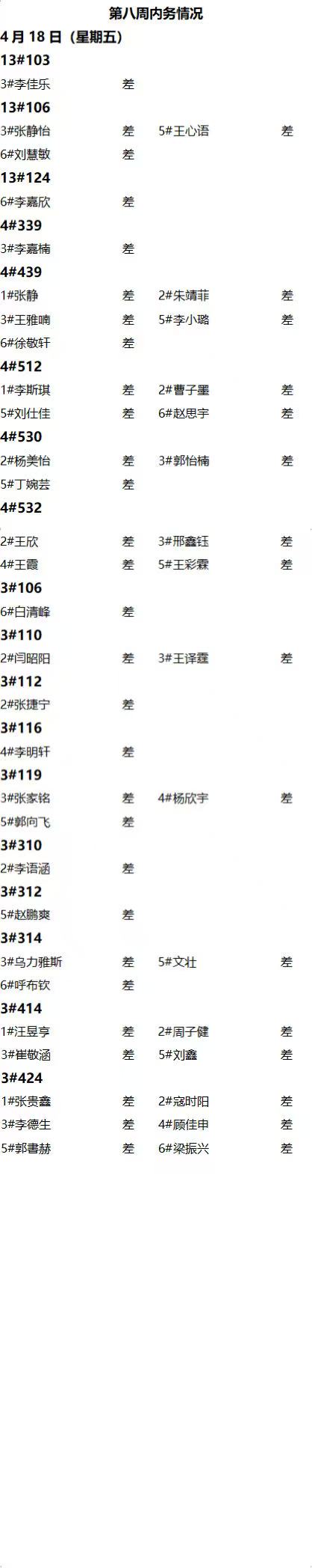 beat365中文官方网站2024——2025年度第二学期第八周通报情况