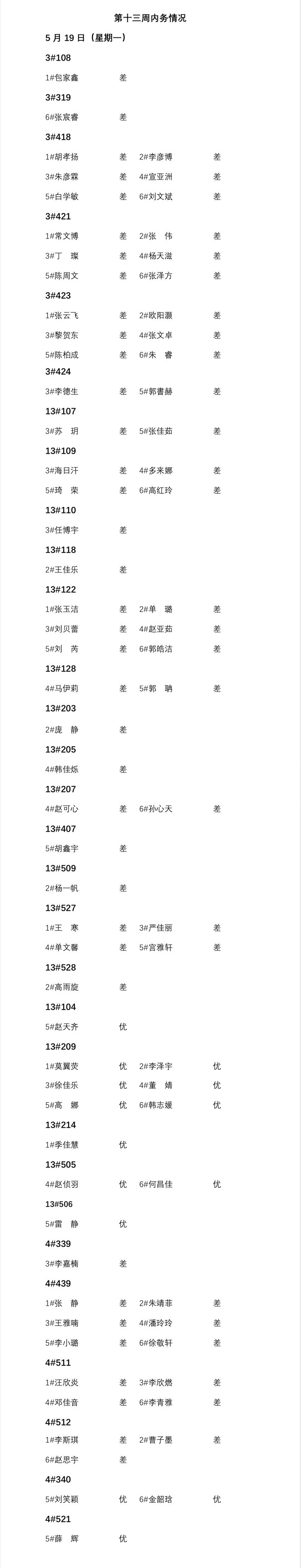 beat365中文官方网站2024——2025年度第二学期第十三周通报情况