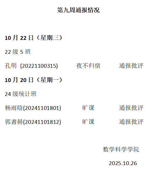 beat365中文官方网站2025——2026年度第一学期第九周通报情况