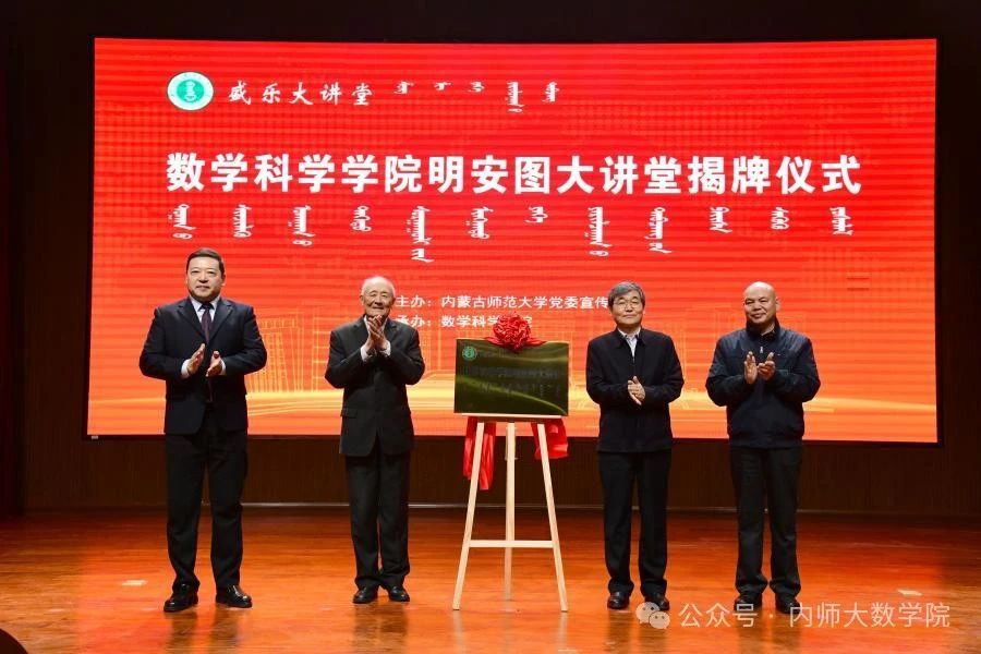 近日,由校党委宣传部主办、数学院承办的beat365中文官方网站盛乐大讲堂·beat365中文官方网站明安图大讲堂揭牌仪式暨学术报告会在盛乐校区图书馆二楼报告厅举行。