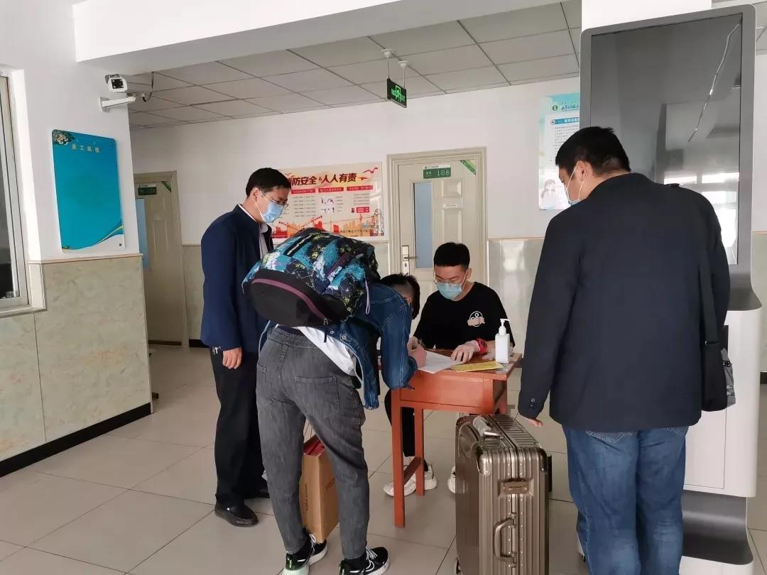 学院党委书记扎其劳教授、党委副书记、副院长季建光老师来到学生宿舍亲切询问学生情况,帮助同学们办理各项手续,搬行李,整理书包,给同学们分发口罩、教材。详细了解学生在家线上学习情况,悉心询问大家的返校生活是否存在困难,并嘱咐同学们有困难随时联系学院辅导员、领导。