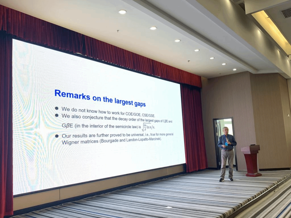 田刚院士作了题目为“随机矩阵与SKY模型”的前沿精彩报告,内蒙古大学吴德玉教授汇报了我校无穷维哈密顿系统及其算法应用教育部重点实验室阿拉坦仓教授研究团队的最新成果“Completeness Theorem for the Root Vector System of Infinite Dimensional Hamiltonian Operator”。与会代表关于报告内容展开了热烈讨论。