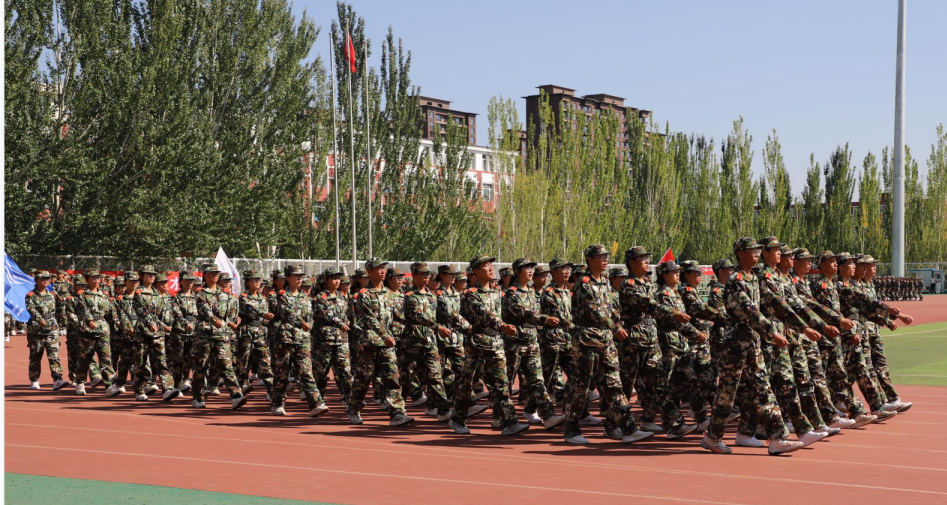 分列式方队以飒爽英姿迎面走来。军训期间,他们恪守“献身、求实、团结、奋进”的校训,与朝日争辉,同夕阳逐走。田径场中洒下过他们的汗水,路灯下回荡过他们的号声。