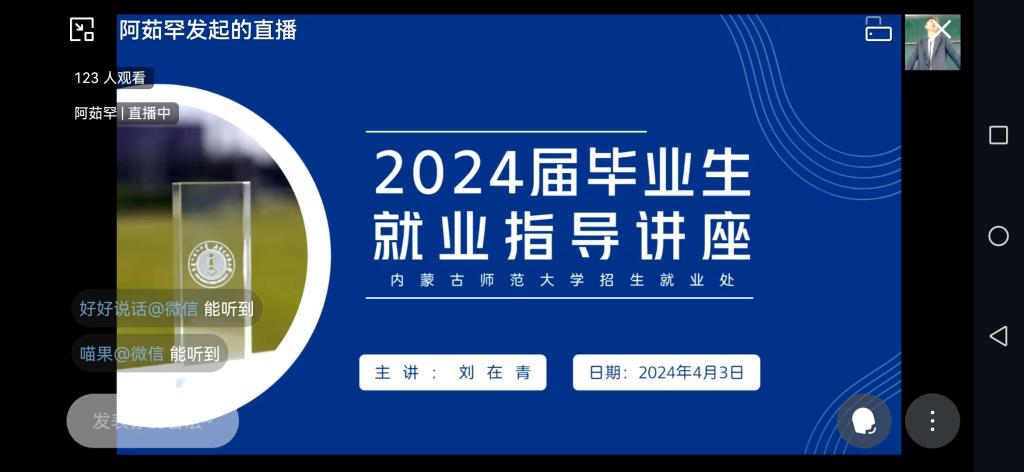 随后,学院萨如拉和阿茹罕老师分别从就毕业手续办理、档案关系转接、就业手续办理、就业平台使用等方面做了具体的指导。最后,学院党委副书记季建光进行了动员讲话。季老师介绍了学院目前的就业状况和就业形势,号召同学们要调整好就业预期,积极主动完成就业,鼓励大家要树立先就业后择业的观念,积极面向基层完成就业。同时,嘱咐同学们在求职期间要进一步提升安全意识,确保毕业和求职安全顺利。