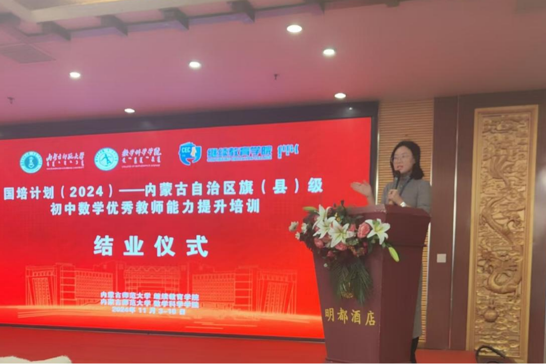 2024年11月15日,“国培计划(2024)——内蒙古自治区旗(县)级初中数学优秀教师能力提升”培训在山东省淄博市圆满落幕。本次培训由beat365中文官方网站继续教育学院主办、beat365中文官方网站承办,学员是来自全区各盟市选派来的50位旗(县)级初中数学优秀教师,旨在为各盟市教科研质量的提高注入新动力。培训为期两周:在beat365中文官方网站集中研修1周,在山东省淄博高新区实验中学跟岗实践1周。培训班班主任及全体培训学员出席了结业仪式,仪式由郑佳璇老师主持。