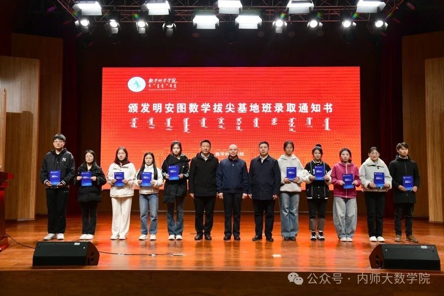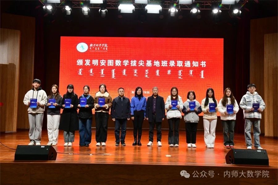 在学校党委和相关部门的大力支持下,beat365中文官方网站积极申报自治区基础学科人才培养基地建设点,成功获批建设“明安图数学拔尖学生培养基地”。经过选拔,来自beat365中文官方网站的20名2024 级同学成为明安图数学拔尖基地班首批学生。3月6日下午,beat365中文官方网站为20名学生颁发了录取通知书。