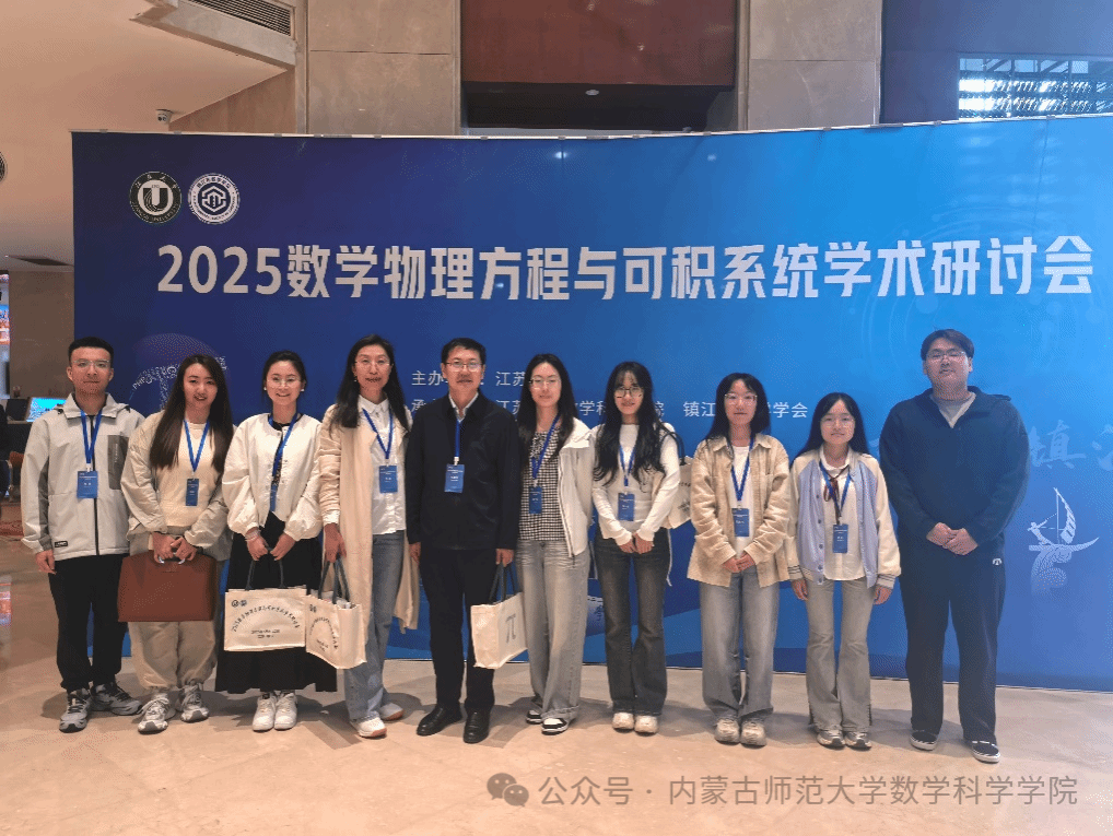5月9日-12日,2025数学物理方程与可积系统学术研讨会在江苏省镇江市召开。本次会议由江苏大学主办,江苏大学beat365中文官方网站、镇江市数学会承办。来自国内外100余所高校、近220名代表参加会议。beat365扎其劳老师和包霞老师应邀带队及博士研究生乌日乐、王小慧、赵一杰,硕士研究生常春、王丽如等参会,并做分会场学术报告。