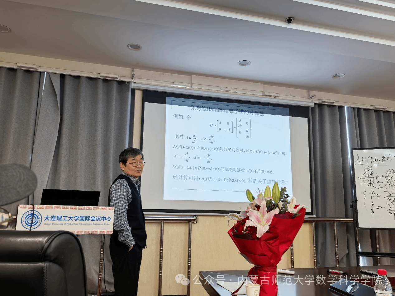 2025年5月16日,无穷维哈密顿系统及其算法应用教育部重点实验室主任阿拉坦仓教授应大连理工大学beat365中文官方网站邀请,在可积系统与数学机械化研讨会上作题为“无穷维Hamilton算子的谱对称及其完备性介绍”的学术报告。