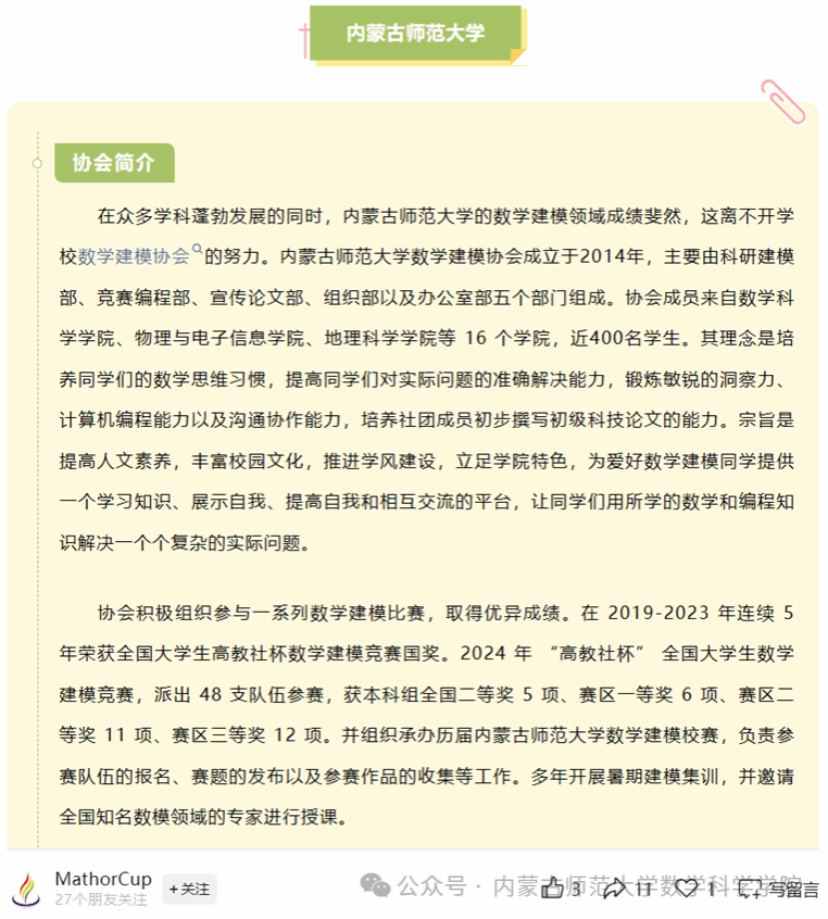 近年来,我校积极推动数学建模与实际应用的深度融合,广泛开展相关教育与教学活动,不断提升学生的数学建模能力,在各类国内竞赛中屡获佳绩。beat365中文官方网站联合数学建模协会首次成为MathorCup数学应用挑战赛的协办单位,并针对比赛进行了专项教学与指导。通过“网络自学—协会指导—导师指正”的多层次学习模式,学生们在浓厚的学术氛围中茁壮成长,最终取得了优异的成绩。
