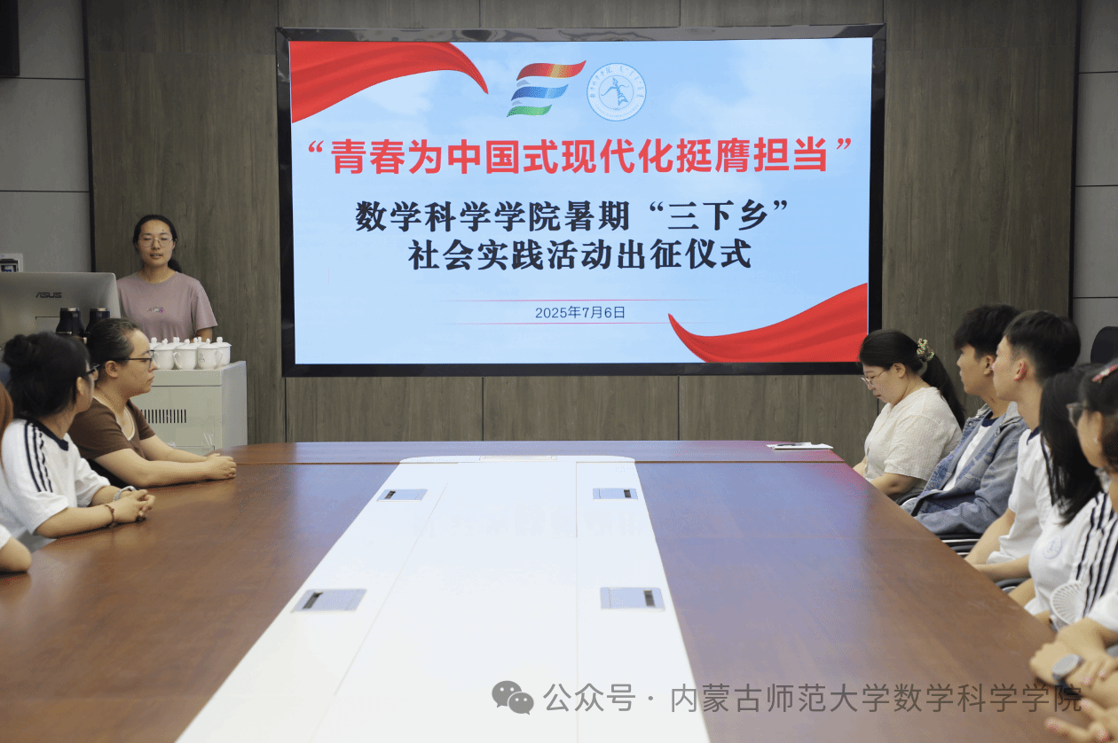 7月6日上午,beat365中文官方网站2025年暑期“三下乡”社会实践活动出征仪式在学院楼会议室举行。团队带队教师刘沙沙、阿茹罕、萨如拉出席仪式,团队16名志愿者参加出征仪式。