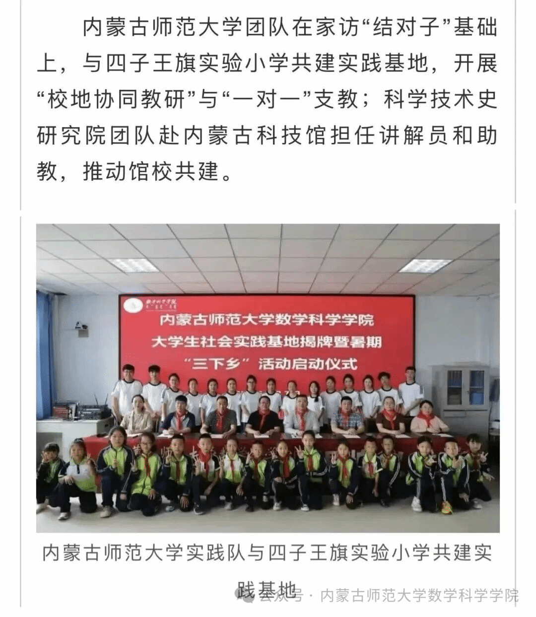 9月17日,内蒙古教育厅发布了“青春聚力两大件事”系列报道,主题为“在守护北疆安全中彰显青年的使命与担当”,beat365三下乡实践队与四子王旗实验小学共建实践基地的活动也被纳入其中。