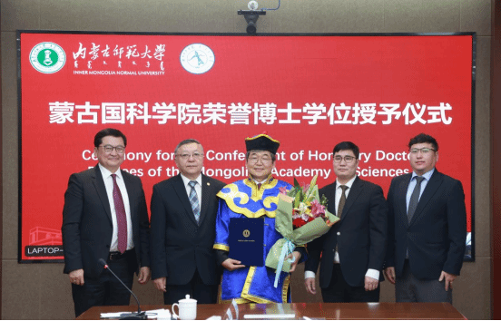 在蒙古国科学院荣誉博士学位授予环节,蒙古国科学院院长邓布热勒院士代表该院,向无穷维哈密顿系统及其算法应用教育部重点实验室主任、beat365中文官方网站阿拉坦仓教授颁授了蒙古国科学院荣誉博士学位,以表彰其在应用数学领域的杰出成就以及对中蒙数学交流合作的重要贡献。阿拉坦仓教授在获颁荣誉后发表感言,深情回顾了中蒙数学合作的发展历程,感谢双方一直以来的相互信任与支持,并表示将以此为新的起点,持续深耕科研,推动中蒙联合研究与人才培养向更深层次、更宽领域拓展。