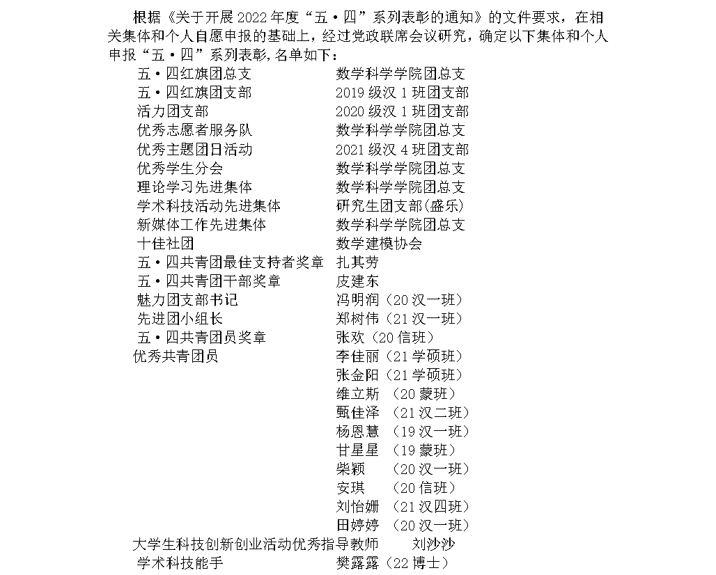 beat365中文官方网站2022年度“五·四”系列表彰推荐名单公示